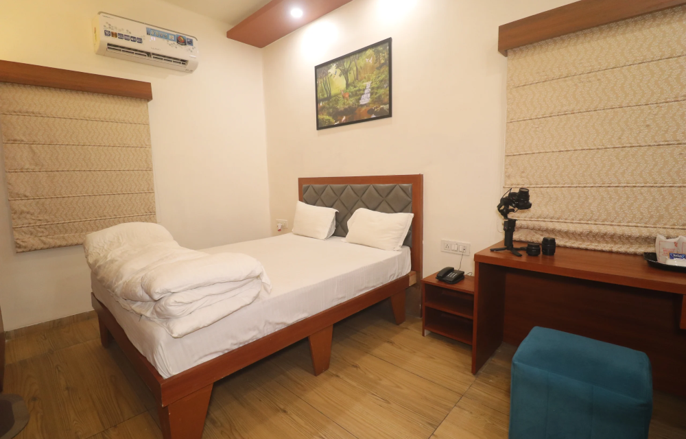 Discover the ultimate in relaxation at Vedika Banquet Hotel & Restaurant. Our Standard Room offer a tranquil retreat. Each room is equipped with contemporary décor, premium bedding, and essential amenities such as complimentary Wi-Fi, in-room entertainment, and a dedicated workspace. Experience unparalleled hospitality and make your stay memorable with us.